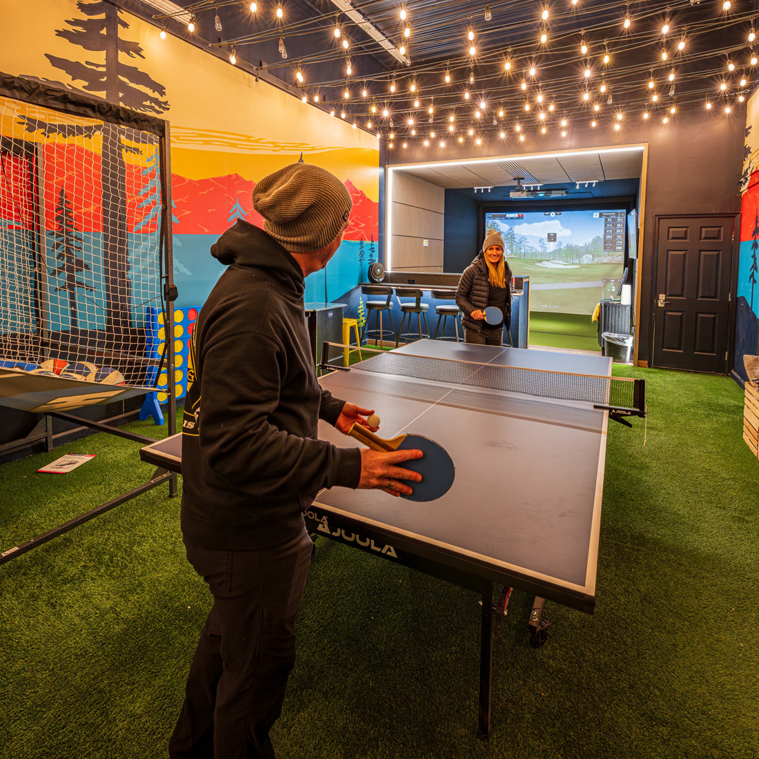 Enjoy the “Links at Urban Woods.” Sharpen your swing any time with our state-of-the-art golf simulator—perfect for golfers of all levels, rain or shine. Feel free to bring your own set of clubs or choose from a selection of irons and woods provided in the game room.